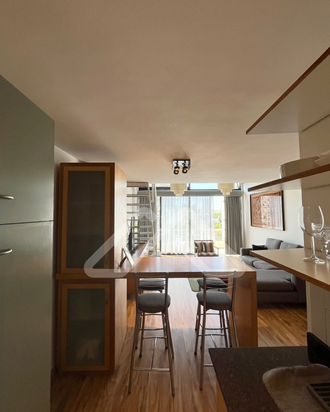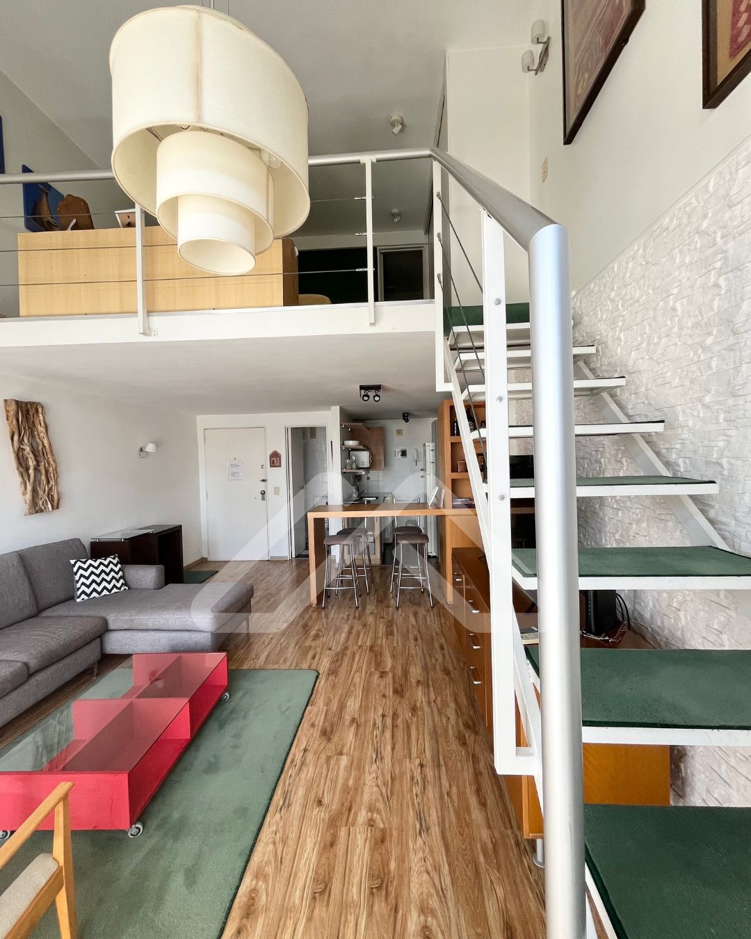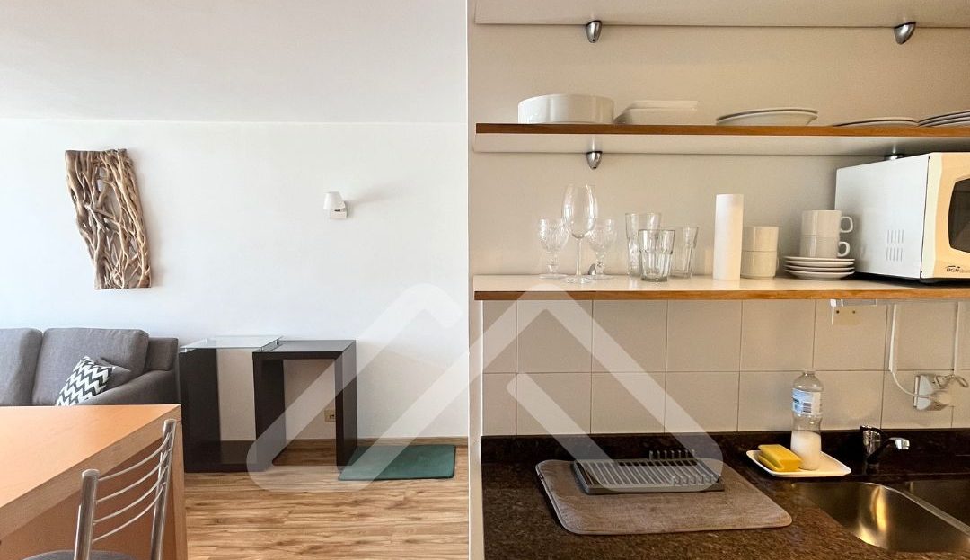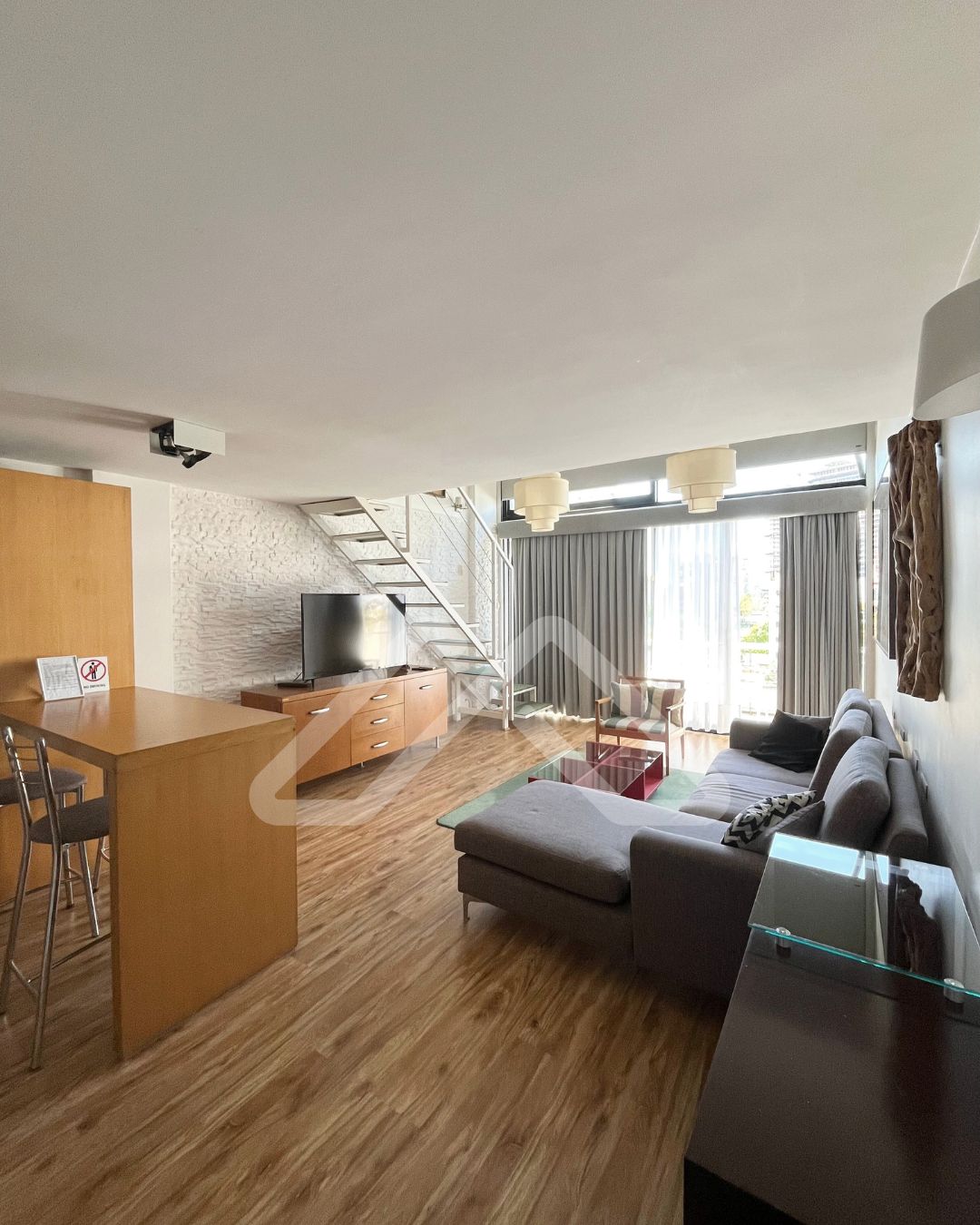 El valor es sin muebles, pero incluye luminarias, el equipo de aire acondicionado carrier frío/calor de 3000 frigorías, y las cortinas roller y romanas, sunscreen y blackout.