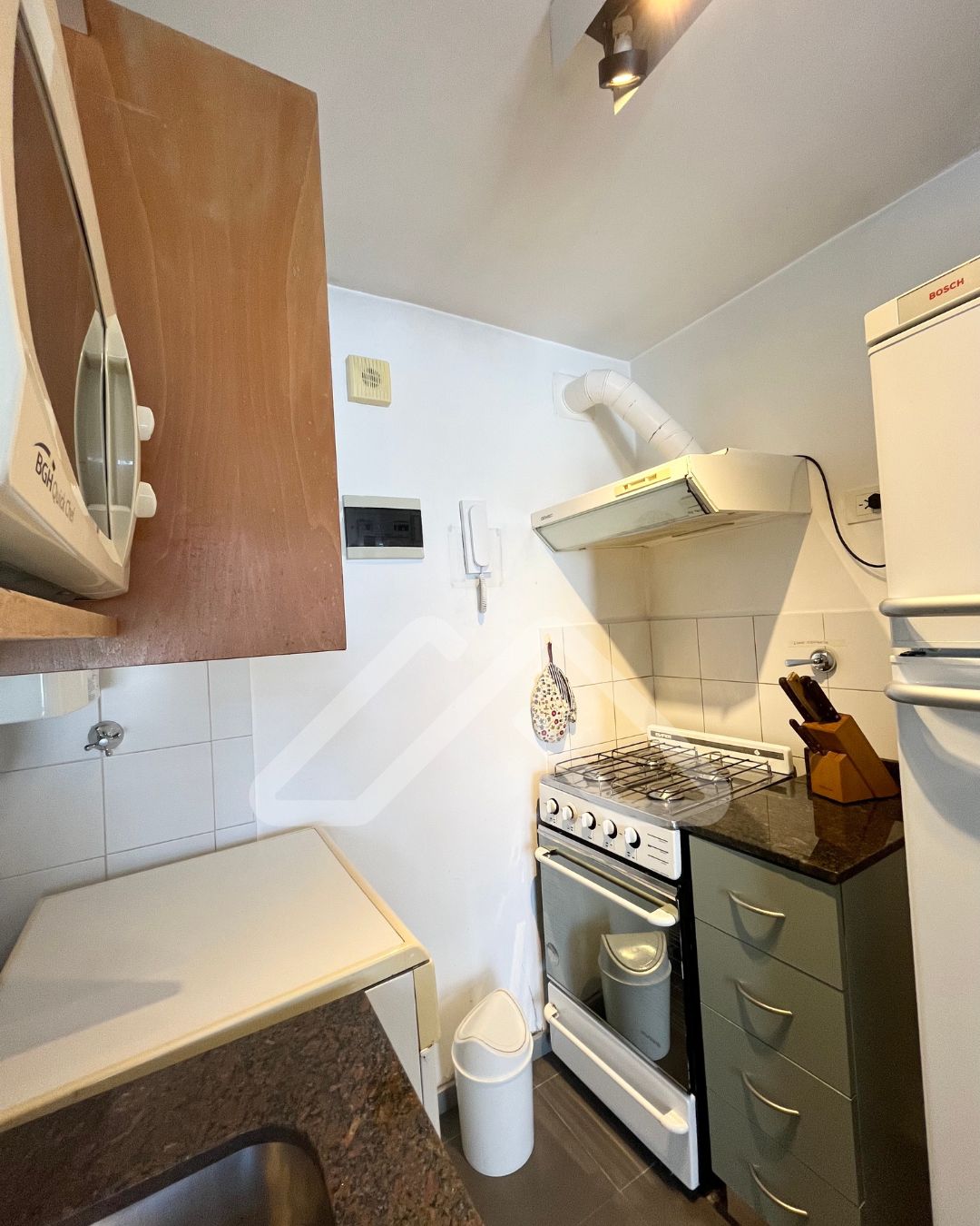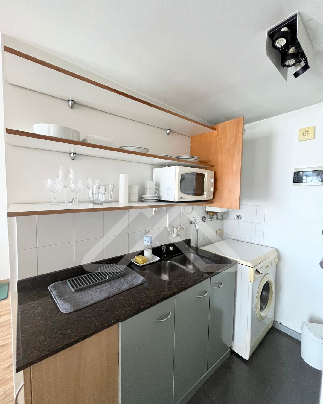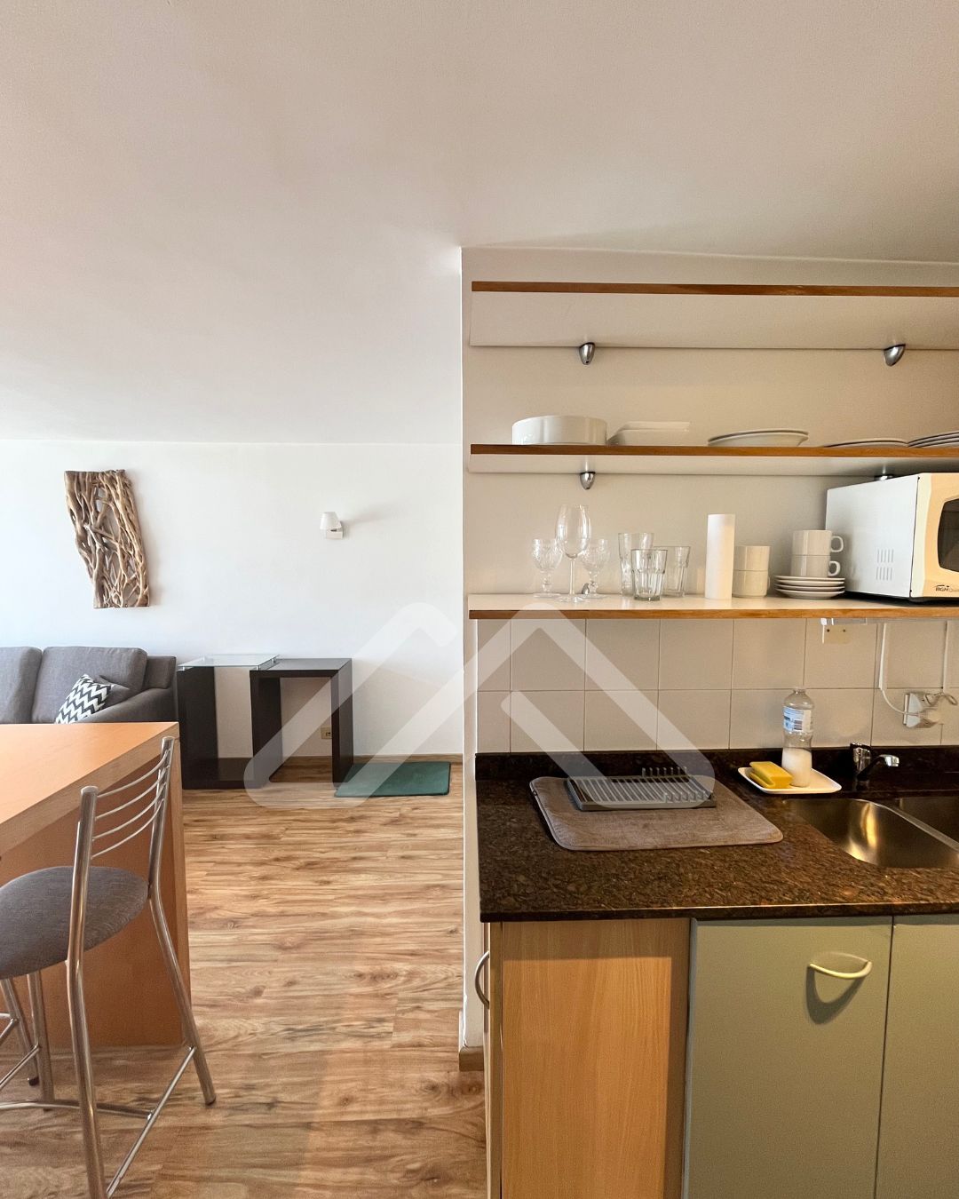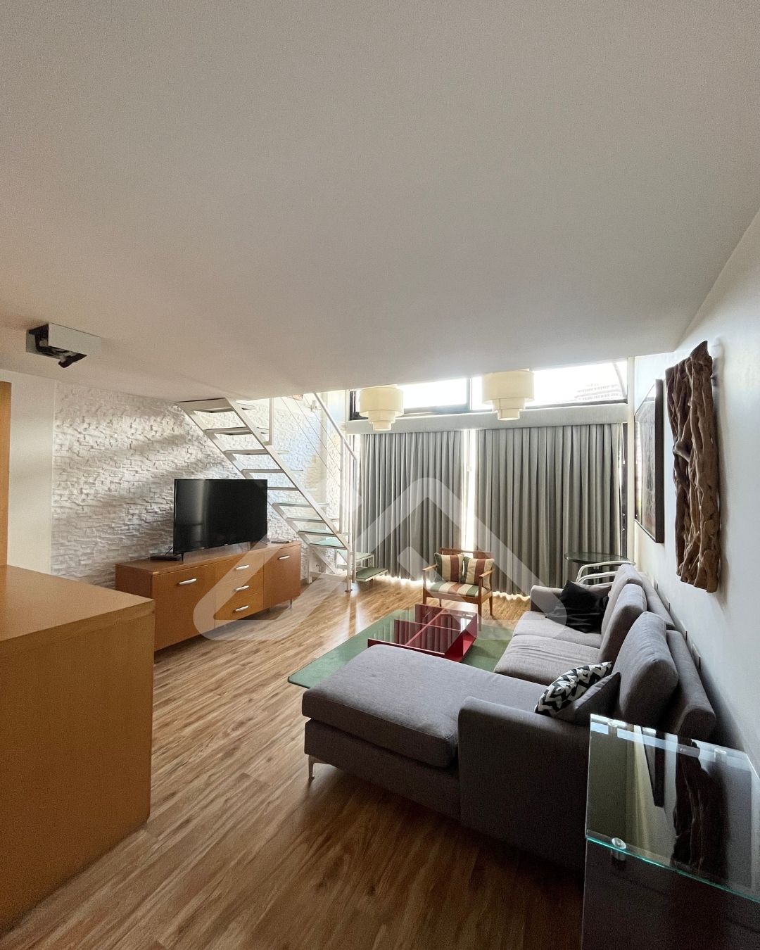 El valor es sin muebles, pero incluye luminarias, el equipo de aire acondicionado carrier frío/calor de 3000 frigorías, y las cortinas roller y romanas, sunscreen y blackout.