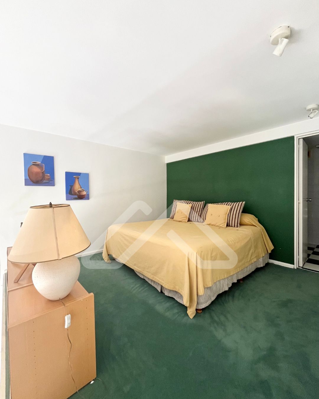 En planta alta se encuentra el dormitorio, con vestidor de grandes placares de puertas corredizas y baño completo en suite. Hermosa vista también desde el dormitorio.